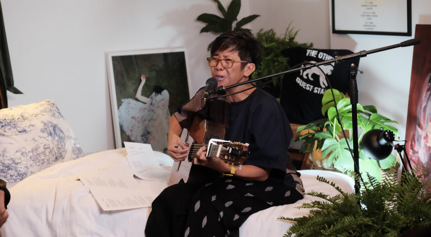 In the first phase of my career, I was mainly singing with my partner. We wrote the music and the lyrics were taken from the poems of Indonesian poets. Then my partner passed away last June, and I had no choice but to keep on going. So this is the phase where I started doing both - making music and also writing lyrics, which is very difficult! I think it’s easier to write a short story!